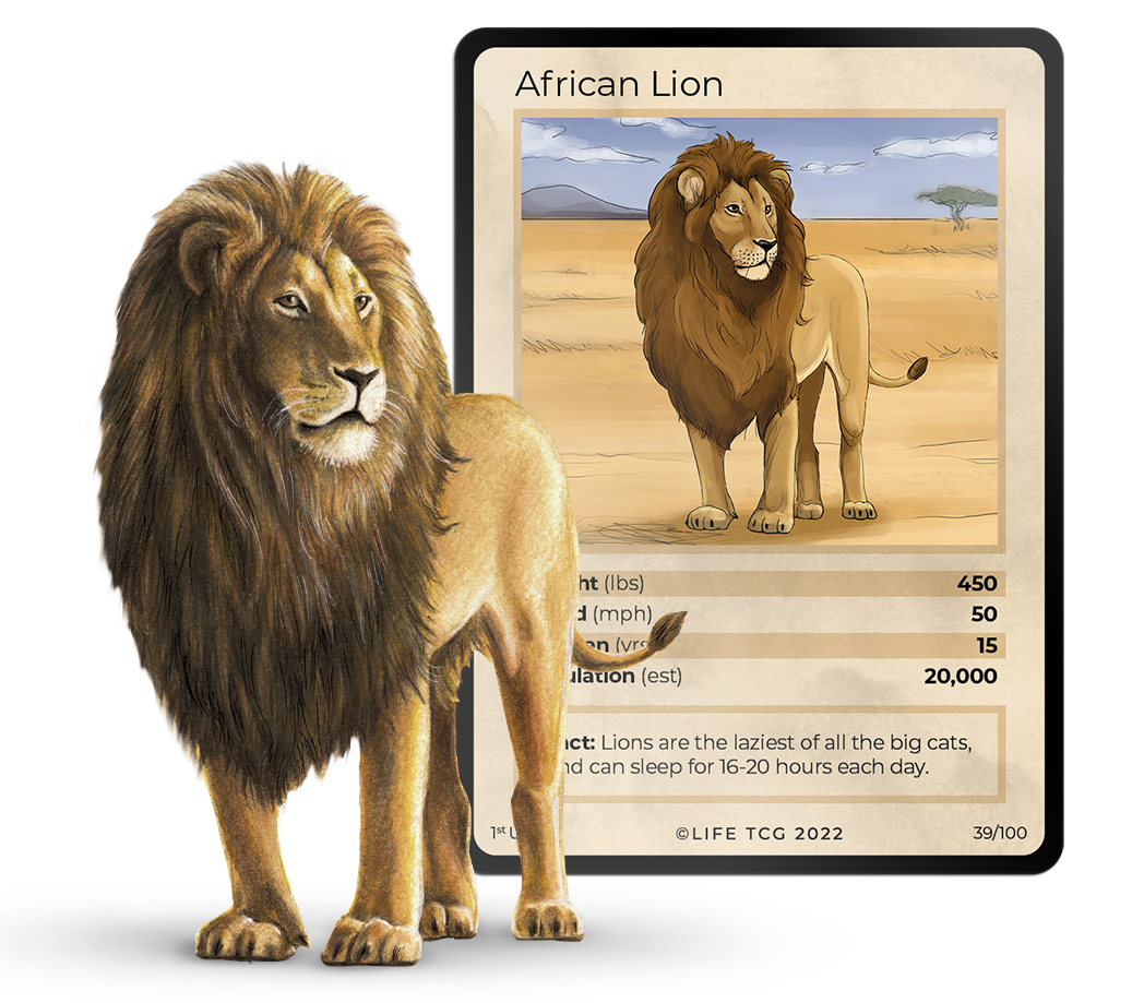 The idea that’s central to LIFE TCG is that our 1st Edition Holographic cards are printed in exactly the same volume as the estimated population of the animal in the wild!
